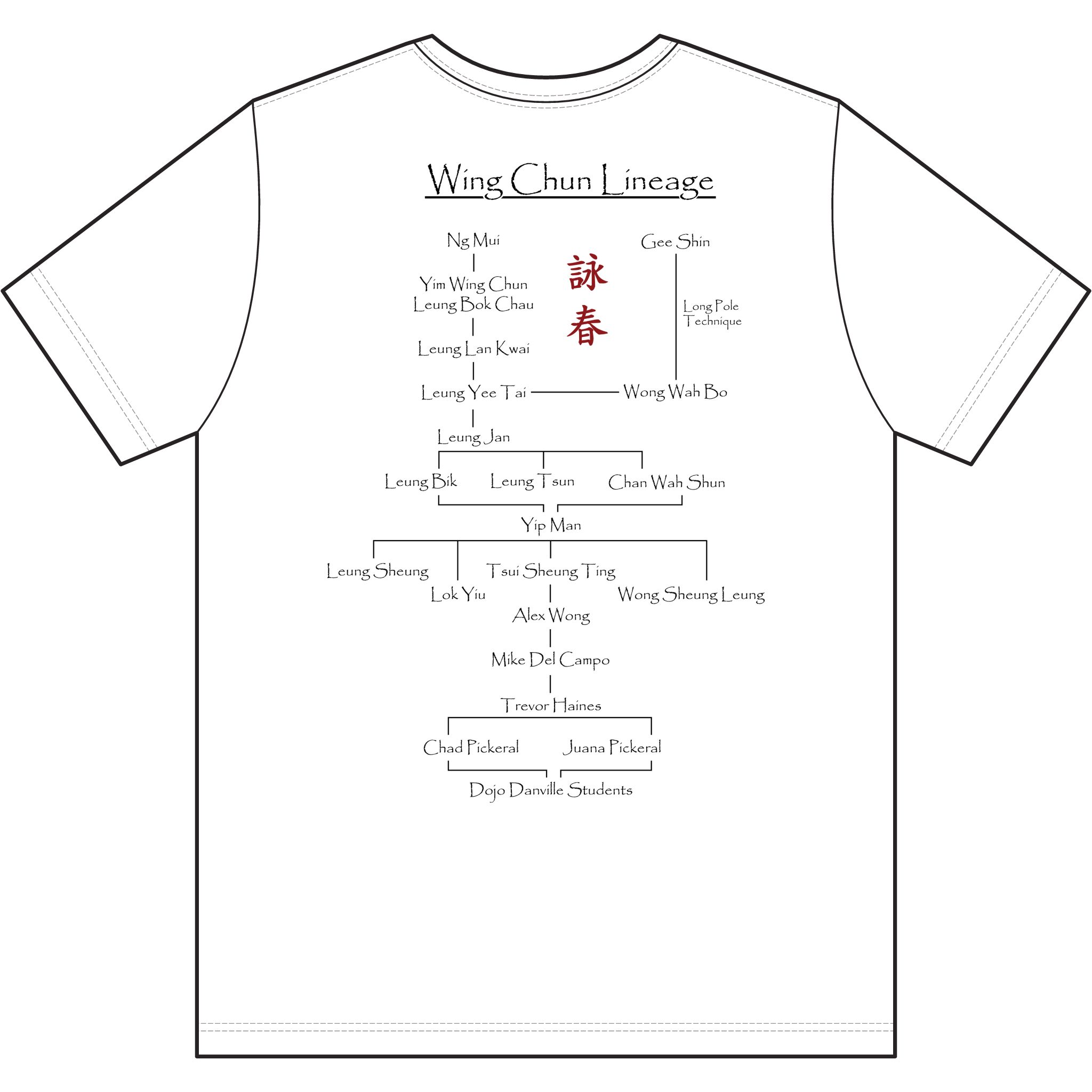 Lightweight and breathable, this performance tee blends martial arts pride with everyday comfort. The front features a distressed circular brushstroke emblem with two birds and the bold dojo name, while the back maps a Wing Chun lineage in clean, minimalist type with a central red character—subtle but unmistakable for those who know the art. Wear it to training, practice drills at home, or to the neighborhood coffee shop; it moves with you, keeps you dry, and carries the story of your school with quiet confidence. The soft, moisture-wicking polyester drapes cool against skin and stays fresh through long sessions, while reinforced stitching and shoulder taping hold up to repeated wear and washes.